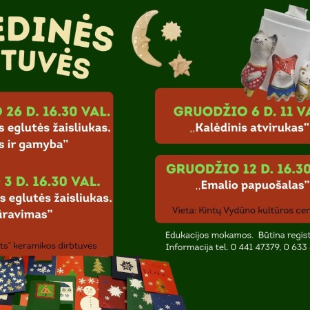 Gruodžio 3 d. 16.30 val.- „Porcelianinis eglutės žaisliukas. Glazūravimas“ („Porcelianinio eglutės žaisliuko kūrimas ir gamyba“- lapkričio 26 d. 16.30 val.)