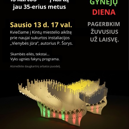 Sausio 13-osios renginyje bus ,,atidengta" lauko instaliacija ,,Vienybės jūra", kuri puoš miestelio aikštę minint valstybines šventes: Vasario16-ąją, Kovo 11-ąją.